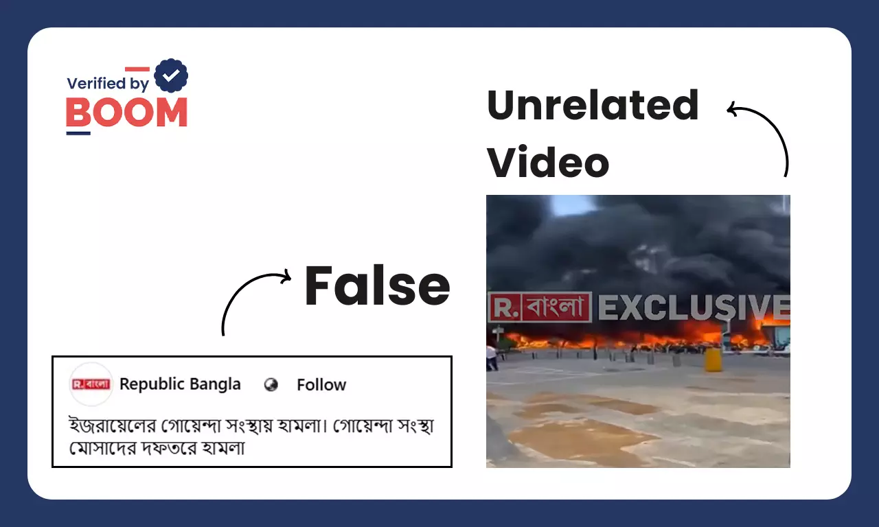 বুম দেখে ভিডিওটি আসলে চীনের চংকিংয়ের একটি পার্কিং লটে ১১ জুন, ২০২৫-এ হওয়া অগ্নিকাণ্ডের। ইরান-ইজরায়েল যুদ্ধের সঙ্গে সম্পর্কিত নয়।